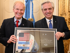 - Por Julian Aristiqui En su viaje encabezó una reunión con el presidente argentino, Alberto Fernández y el Ministro de Ciencia, Daniel Filmus dónde se formalizó, en la Casa Rosada, el ingreso del país a los Acuerdos de Artemisa, un tratado internacional con estándares a seguir para la exploración espacial de manera pacífica. El exastronauta estadounidense tambien brindo una charla en la Universidad de Buenos Aires (UBA) y tiene previsto visitar el Centro Espacial Teófilo Tabanera de la Comisión Nacional de Actividades Espaciales (CONAE) en la provincia de Córdoba. En una conferencia de prensa Nelson refirió que "áreas de cooperación entre ambas instituciones se enfocarán en diversas temáticas que los científicos de ambos países irán definiendo"  "Hay más de un billón de planetas similares a la Tierra, probablemente con vida, a medida que continuamos explorando el espacio y vamos a volver a la Luna y, después, ir a Marte, queremos tener un conjunto de estándares para todas las naciones que participen en la exploración del espacio profundo, con intenciones pacíficas, ayuda mutua y colaboración en caso de rescates y desastres" explico Nelson sobre los fines del tratado. A través del programa Artemisa, se prevee que los próximos humanos en caminar sobre la superficie lunar sean un hombre y una mujer una vez que concluyan los vuelos de prueba además aseguro que quiere que "la Argentina sea un socio en muchos de nuestros proyectos espaciales".